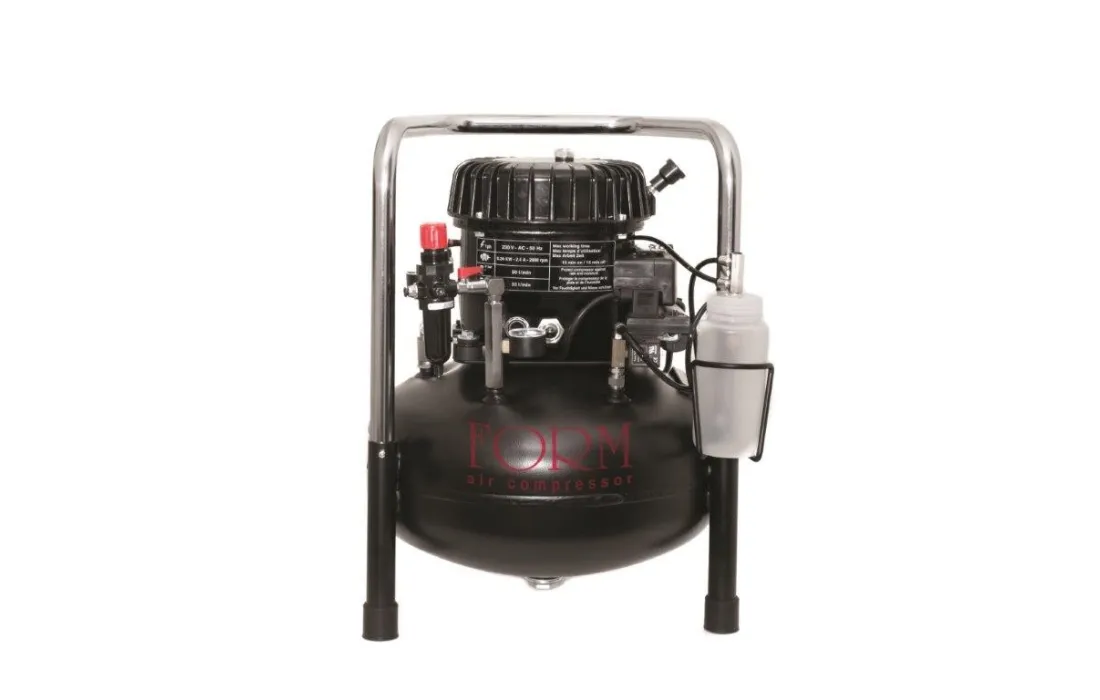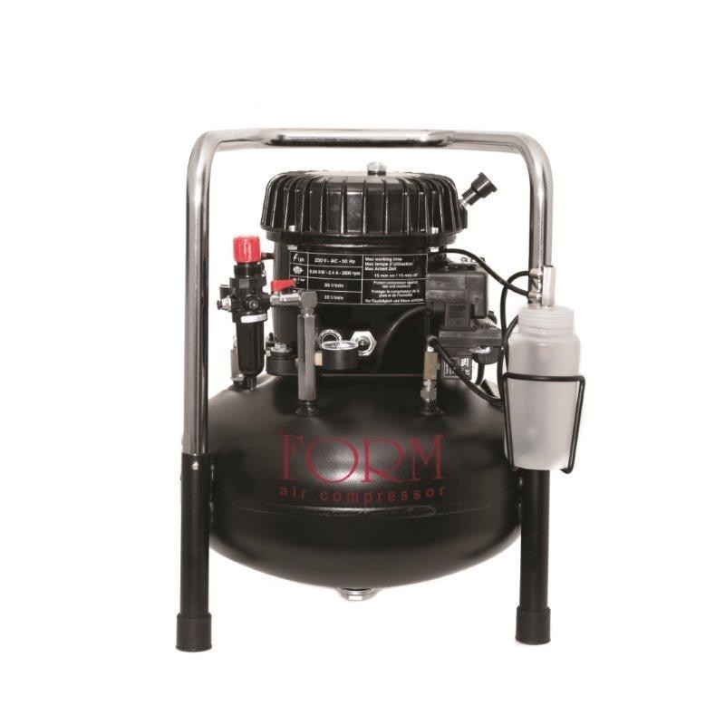 Compressore di 24 litri alta pressione. silenziato a 16 bar. con due manometri. filtro anti condensa. e auto drenaggio della bombola. con serbatoio di recupero condensa. certificato icepi dimensioni larg 40cm hlt 56 cm 31 kg