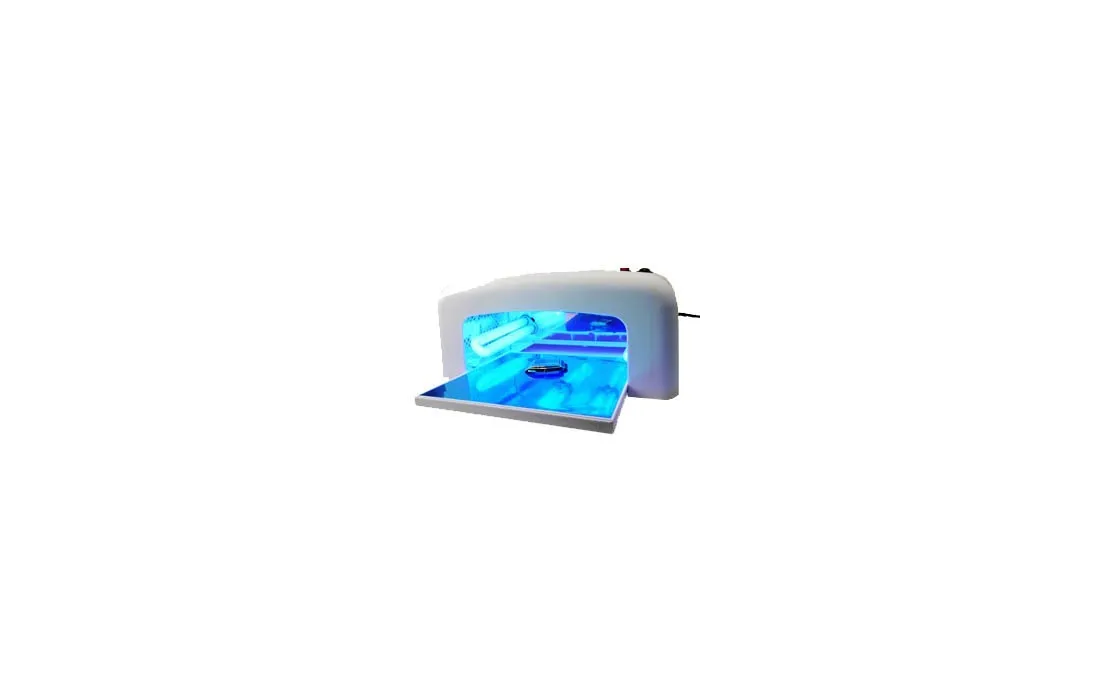 Lampada uv ultravioletti per incollare i vetri 4 neon da 9w timer 120 sec piano d'appoggio estraibile dimensioni 100x220x240 peso 1.7 kg
