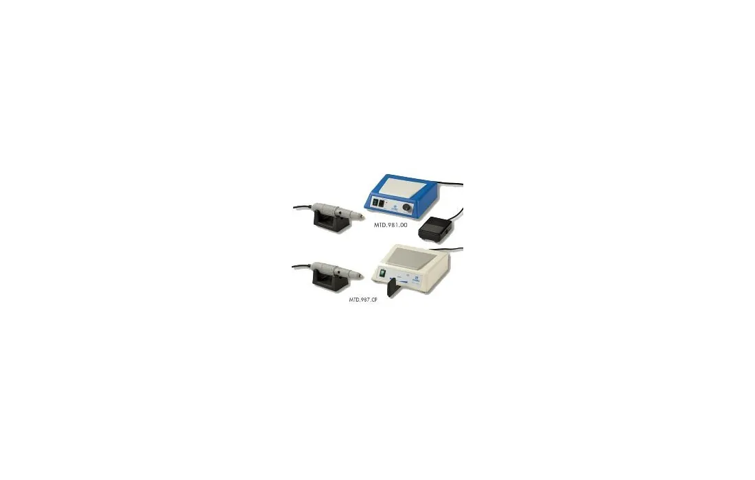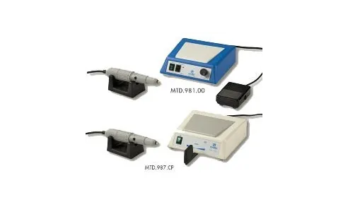 Modello mtd.981.00 blu- controllo manuale modello mtd.987.cp- contrllo a pedale potenza 100 w - velocità max da 0 a 27000 giri con inversione di marcia tensione di lavoro 24 vdc - peso del manipolo 200 g - dimensioni 18 x 18 h 6 cm.